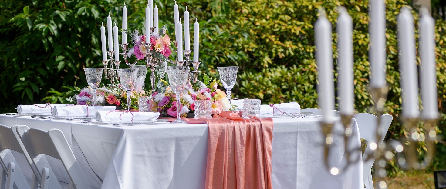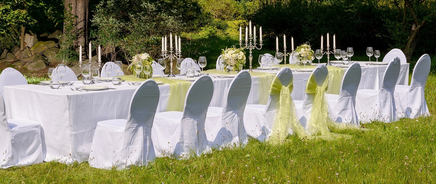 Du fragst Dich, wo Du Hochzeitsdeko mieten kannst? Hier, bei yawima! Unser Onlineshop bietet Dir eine große Auswahl an Tischdeko und Raumdekoration sowie Tischen und Stühlen für Deine Hochzeitsfeier. Darüber hinaus findest Du hier Klappstühle und Traubogen für freie Trauungen sowie Floristik, Papeterie, Bilderrahmen und Technik im Hochzeitsverleih für Euren großen Tag. Besonderes Freunde von amerkanischem Weddingdesign kommen bei uns auf ihre Kosten. Beliebte Chiavari Chairs, X-Back-Chairs und eine große Auswahl an beliebten Platztellern, Tischtüchern und Servietten findest Du hier in großer Auswahl. Unter Inspiration findest Du vorgedachte Tischdeko-Konzepte unserer Designer oder im Katalog alle Leihartikel einzeln und übersichtlich. Im Warenkorb entscheidest Du, wieviel Service Du Dir leisten möchtest. Zur Auswahl stehen die Selbstabholung ab Lager, die Lieferung und Abholung oder der Komplettservice mit Auf- und Abbau. So hast Du volle Kostenkontrolle von Anfang bis Ende und ersparst Dir böse Überraschungen. Schau am besten gleich mal rein und entdecke, wie schnell und einfach Du Dekoration für Deine Hochzeit mieten kannst.
