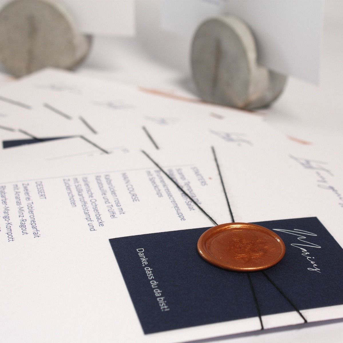 das Accessoire-Set beinhaltet: 5x Teelichthalter Beton H6 cm, 5x 8h-Teelicht, 1x Kartenhalter Beton D5 cm, 1x Tischnummern-Karte, 8x Papeterie für Menü/Getränkekarte