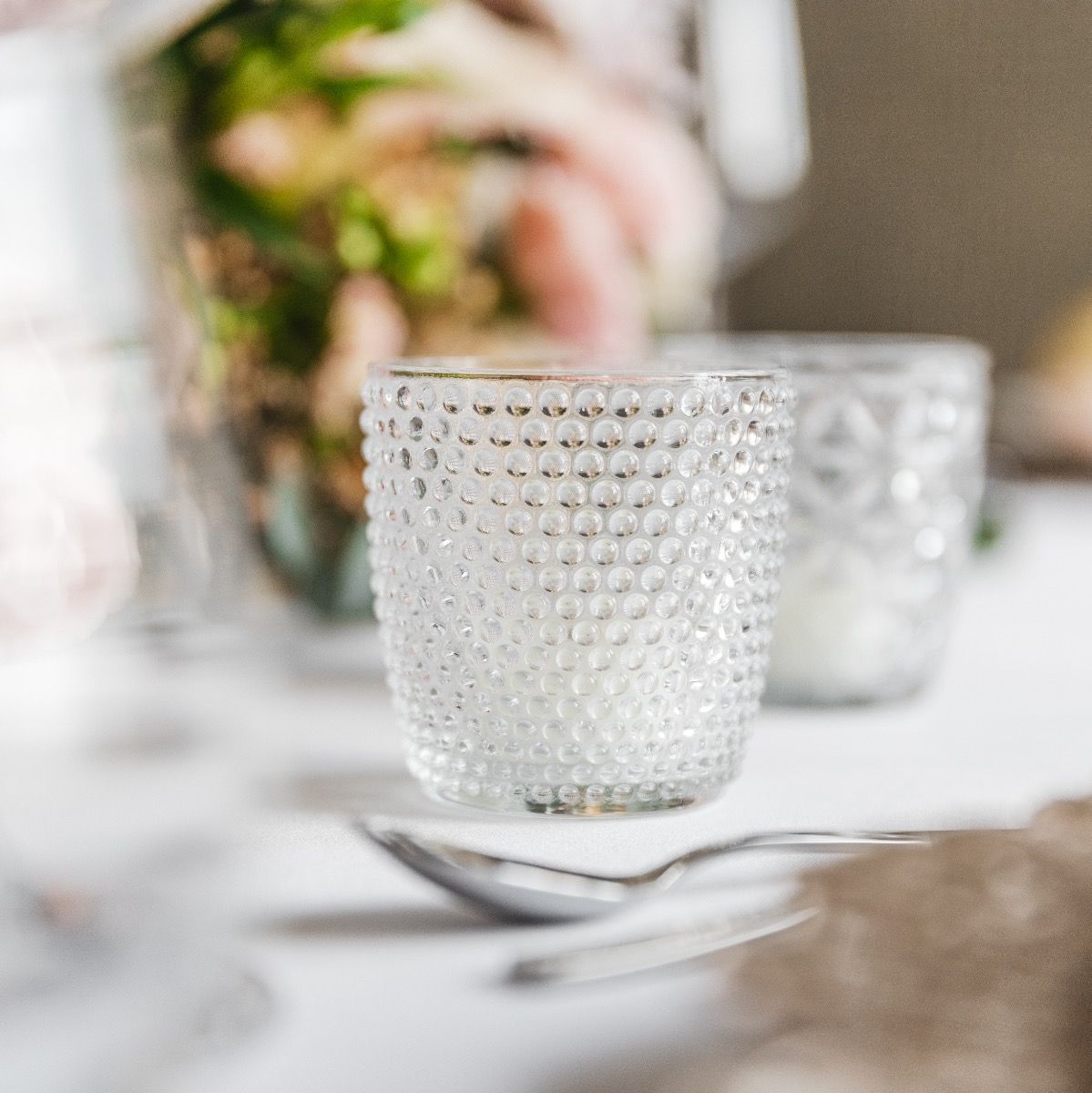 Das Set enthaltet: 8x Windlicht Lumi Klar, 8x 8h-Teelicht