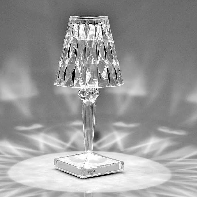 auch hier bricht sich das Licht im geschliffenen Acrylglas und erzeugt wunderbare Lichteffekte auf der Tischoberfläche, aber: diese Leuchte kann bunt! Per Fernbedienung kannst Du die Farben im RGB-Mix wählen, auch Faden, Dimmen und Farbwechsel ist möglich.