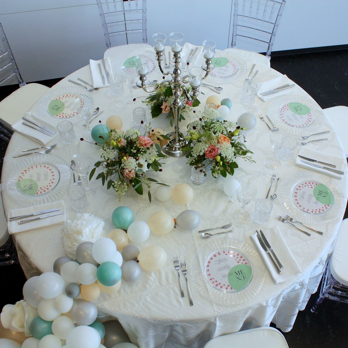 Die abgebildete Papeterie liefern wir gern auf Anfrage. Für die Ballons können je nach Veranstaltungsort zusätzliche Aufbaukosten entstehen.