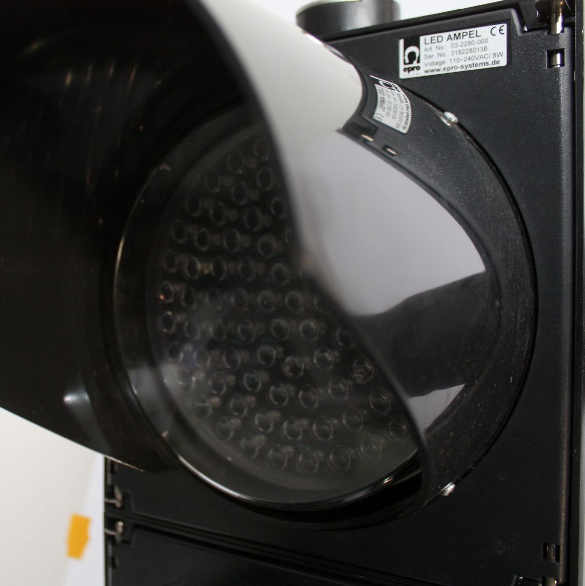 Eine Ampelanlage mit rotem und grünem LED-Licht inkl. Umschalter und Stativ.