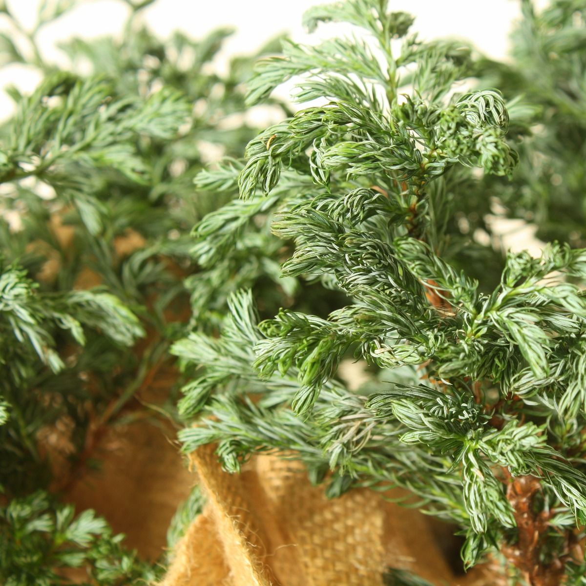 Topfpflanzen sind voll im Trend - nach der Party pflanzt Du sie auf den Balkon oder in der Garten, Diese Mini-Tannenbäume sind malerisch schön, schaffen sofort ein märchenhaftes Ambiente auf dem Tisch, weiche Nadeln, lange haltbar, verpackt mit Folie gegen Nässeflecken und Jute für urbanen Lock, perfekt für Weihnachten und alle naturnahen Designs.