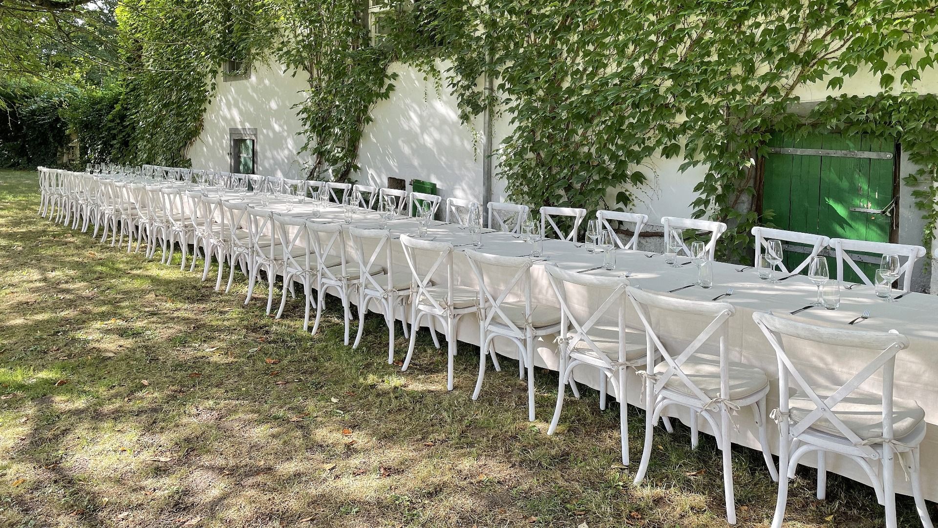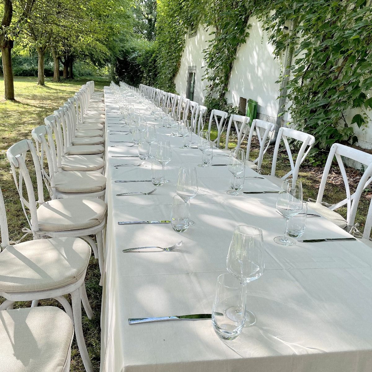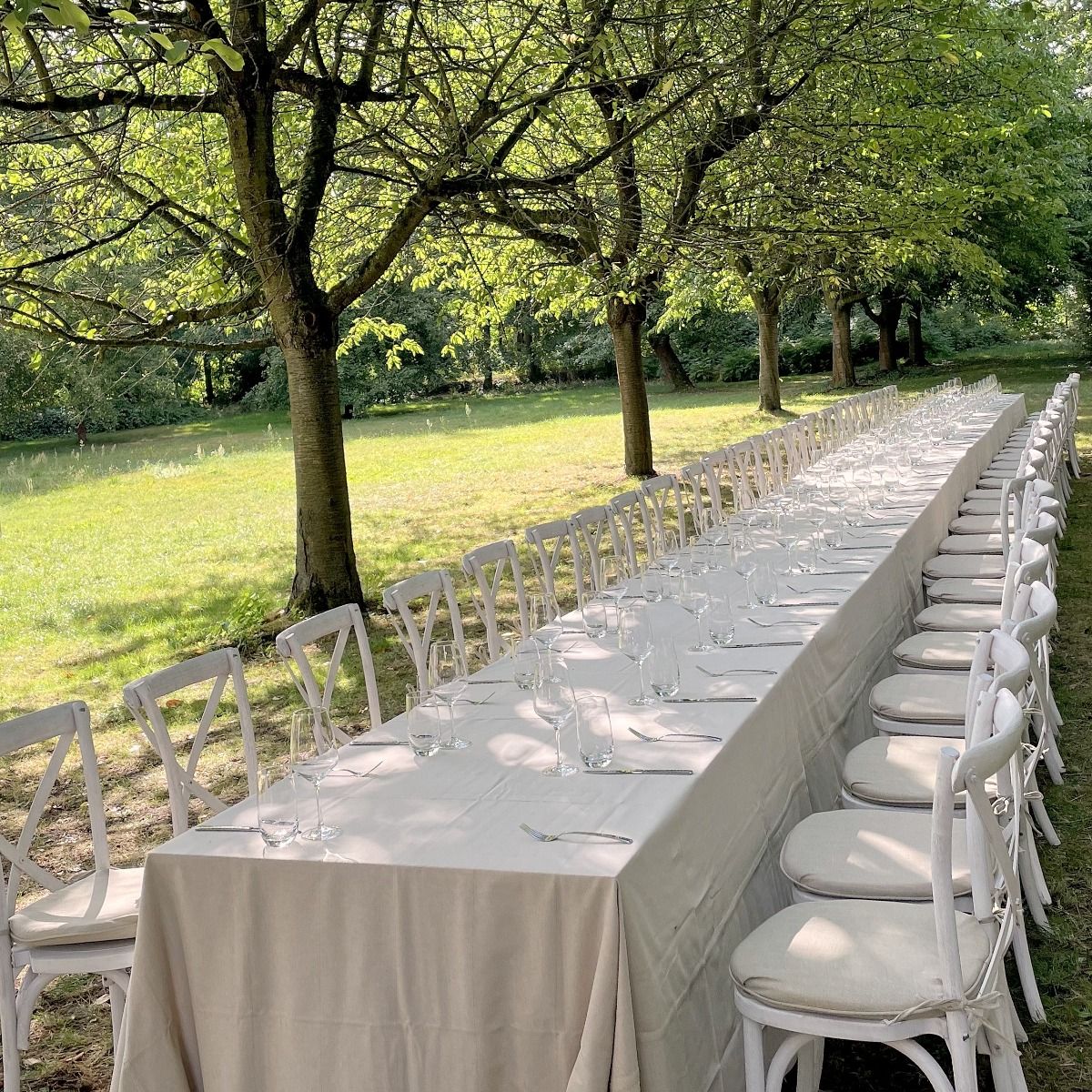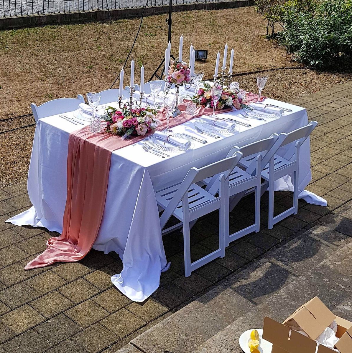Der Allrounder für Dinner, Hochzeiten und Meetings. Ein schnell aufzustellender Klapptisch für bis zu 8 Personen mit Molton bespannt.