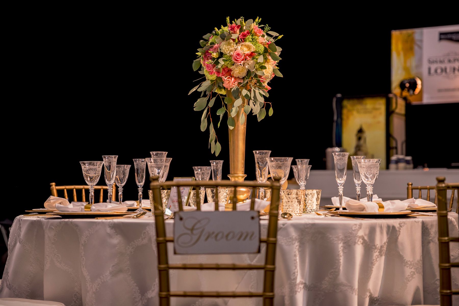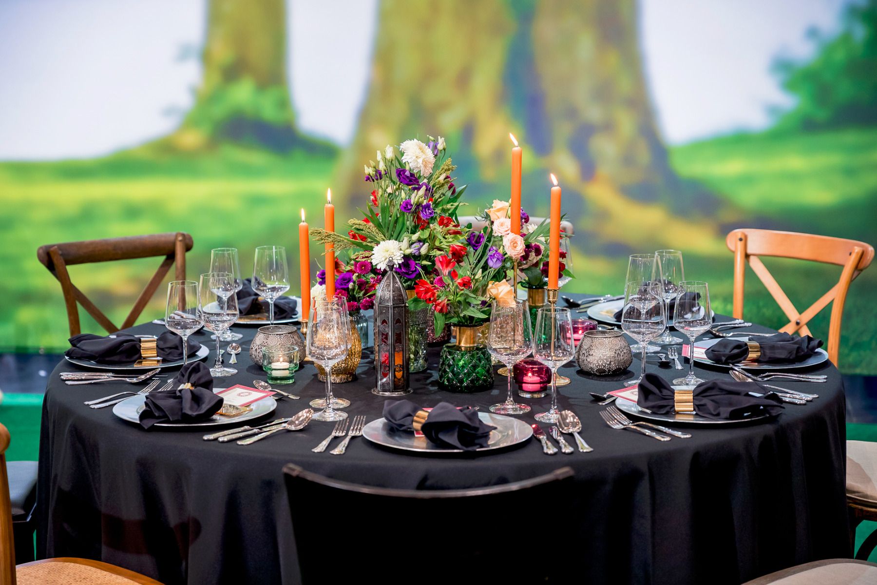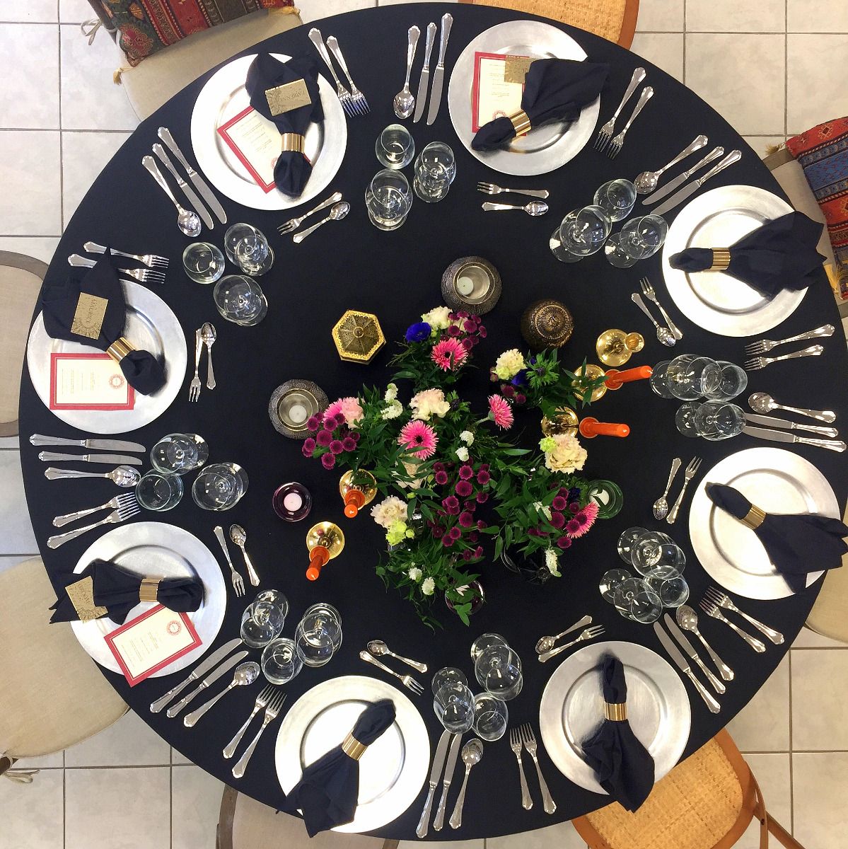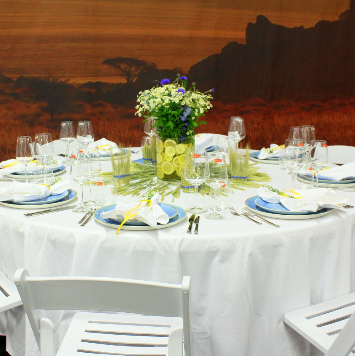 Der Klassiker für Dinner oder Hochzeiten. Ein schnell aufzustellender Klapptisch für 8-10 Personen mit Molton bespannt.