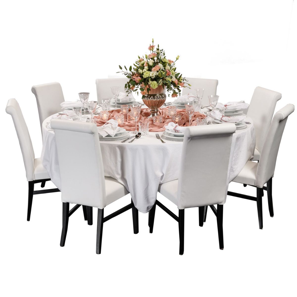 Ein Traum von Rose und Weiß verzaubert. Alles fließt und spielt mit dem Auge. Silber und Kristall geben Glanz und hochwertige Anmutung. Wunderschön für Hochzeit oder edles Dinner.