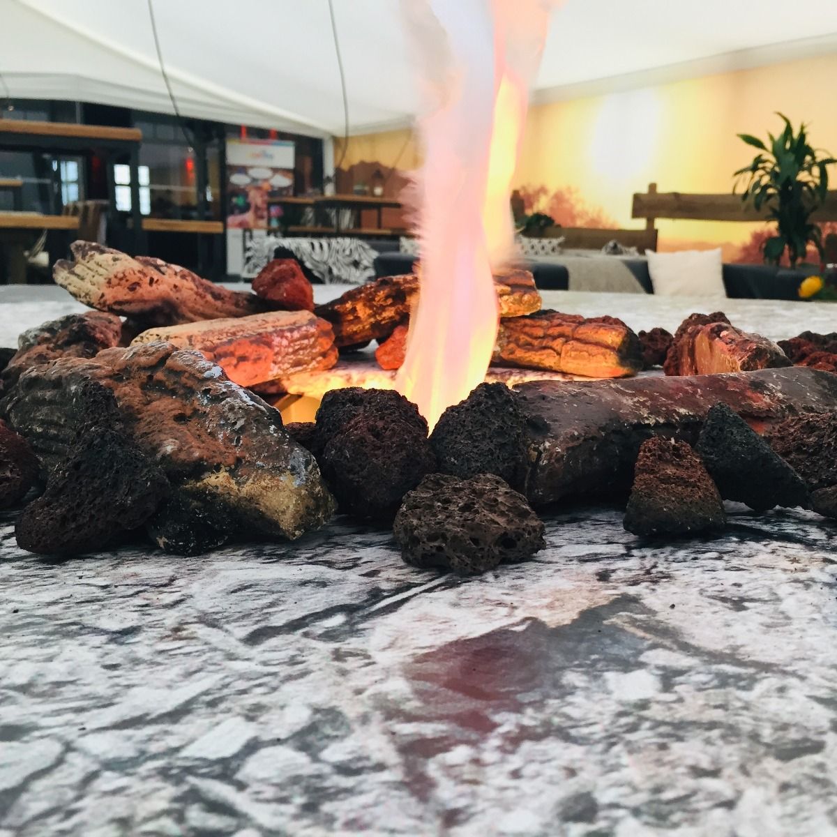 Ein Lagerfeuer für die Lounge ... hier trifft man sich, hockt ums Feuer, genießt die Atmosphäre - wahlweise mit Elektrofeuer, Bio-Brennpaste im Glaszylinder oder Propangasbrenner mit Glasumrandung.