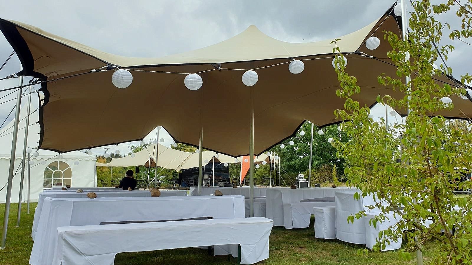 Die Allwetter MK4 Stretchzelte überzeugen mit Form, Flexibilität und Preis. Sie können als einzelne Einheit mit 70 qm oder als Großzelt mit bis zu 300 qm aufgespannt werden. Alle Stretchzelte verfügen über eine, in Deutschland, von TÜV Rheinland zertifizierte Zulassung.