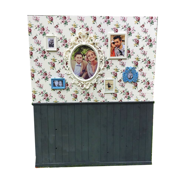 Eine attraktive Fotowand zum Behängen mit Bilderrahmen und Accessoires. Sie eignet sich ideal für Hochzeiten sowie für Lounges oder Kamerahintergründe.