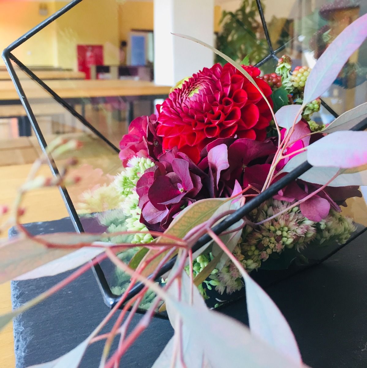 modernes Centerpieces - modernes Gesteck - so schnell wirst Du zum Trendsetter. Passend für unser Terrarium haben wir dieses Gesteck gestaltet. Perfekt für kleiner Tisch für Stehempfang oder Lounge,
