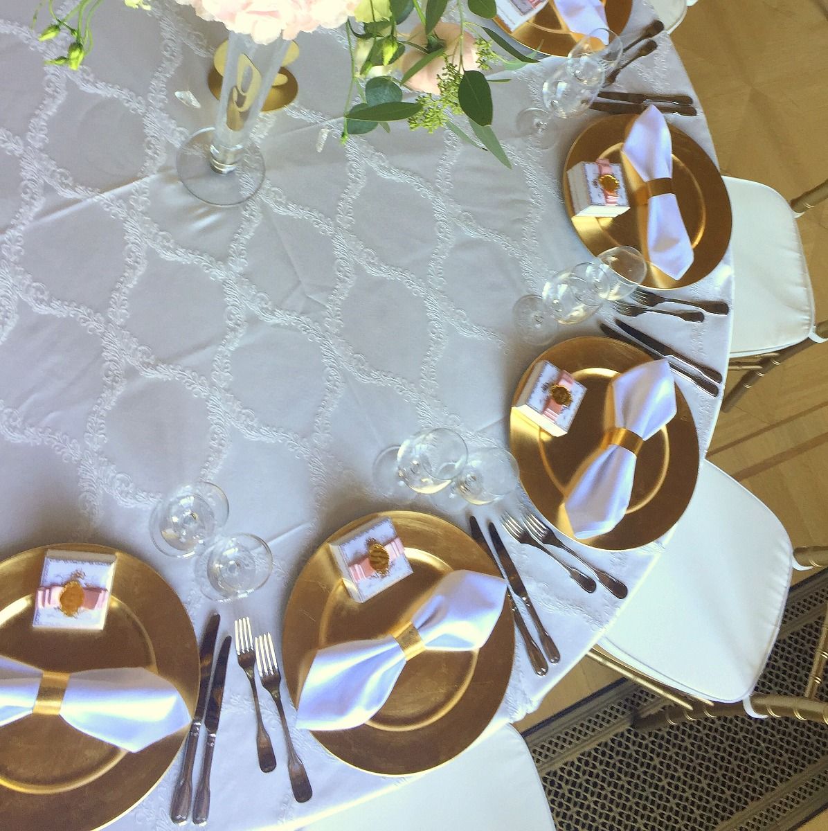 Für Glanz&Glamour haben wir hochwertige Gladdis-Tischtücher mit goldenen Chiavari Chairs kombiniert, dazu goldene Platzteller, Serviettenringe und Besteck. Als Centerpiece eine hohe Flötenvase auf einem 80 cm runden Spiegel. In ihm glänzen am Abend feine Mercury-Windlichter. Lasst Euch verzaubern und setzt ein Statement.