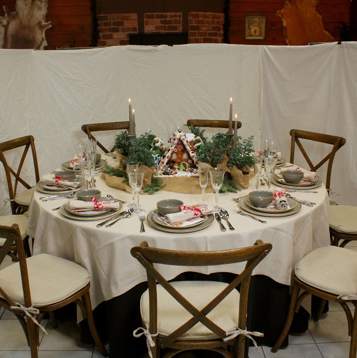 Hier sind strahlende Kinderaugen garantiert. Mit dieser Tischdeko-Box kommt das Märchen von Hänsel und Gretel auf die Tafel - mit echtem Pfefferkuchenhaus, mit Mini-Märchenwald und wunderschönen Vintageleuchtern. Dazu gibts Platzteller von Stonecast und Stoffservietten mit Weihnachtsband fürs Fest der Familie. Das Beste: das Pfefferkuchenhaus darf nach dem Dinner geschlachtet werden. Frohes Fest!
