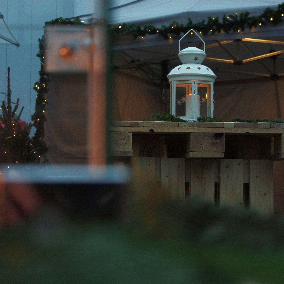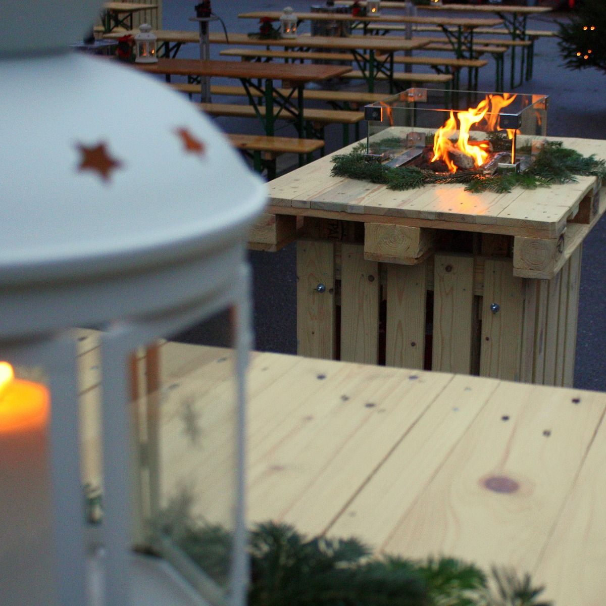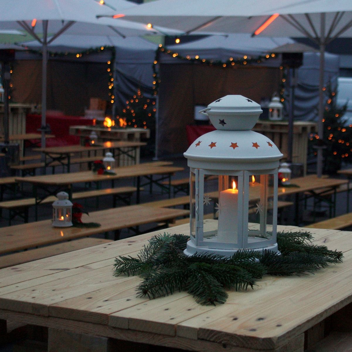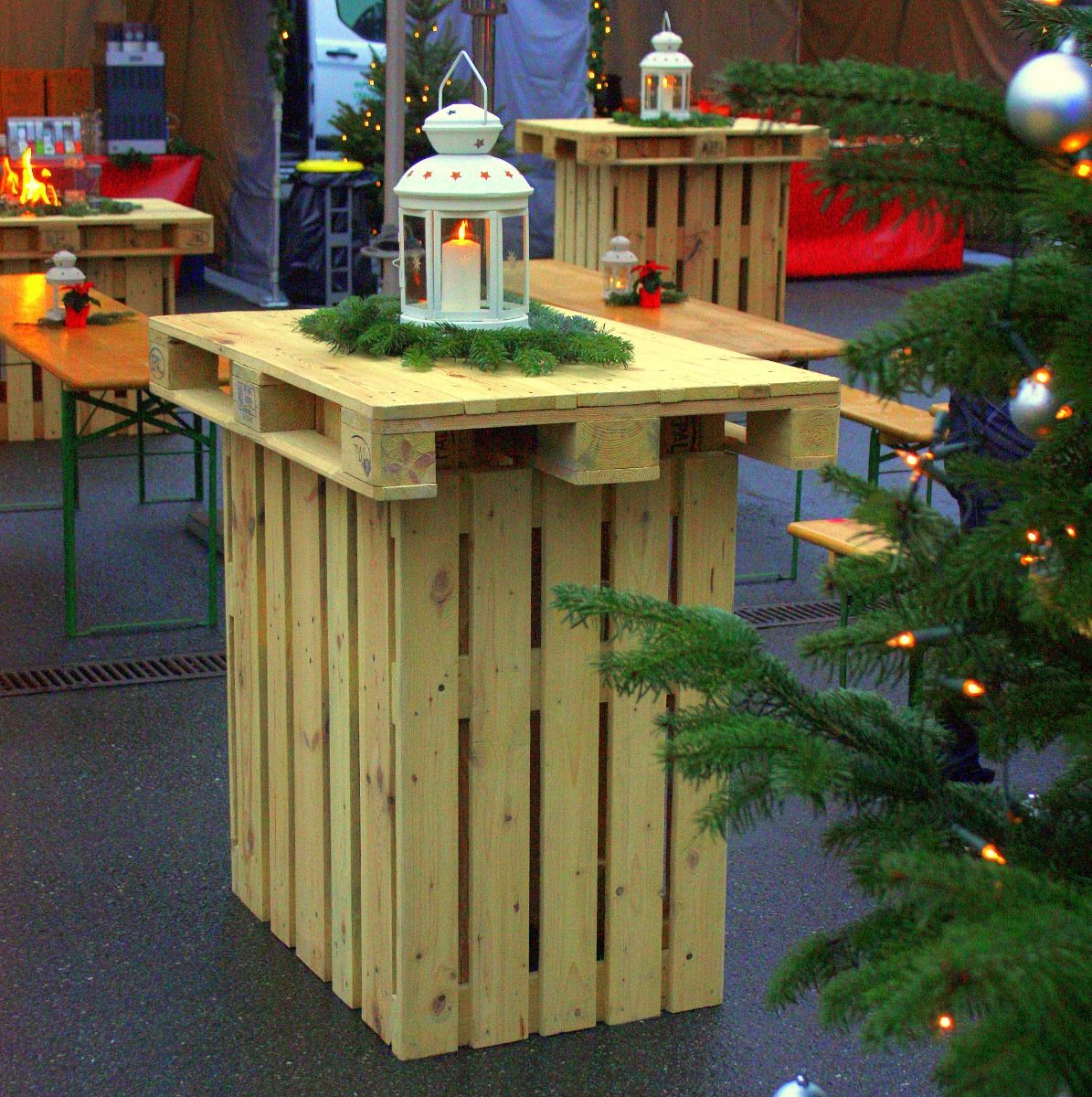 Schönes Centerpiece zur Weihnachtszeit. Ideal auf unseren Stehtischen der Portlandia Lounge oder auf runden Bankettischen.