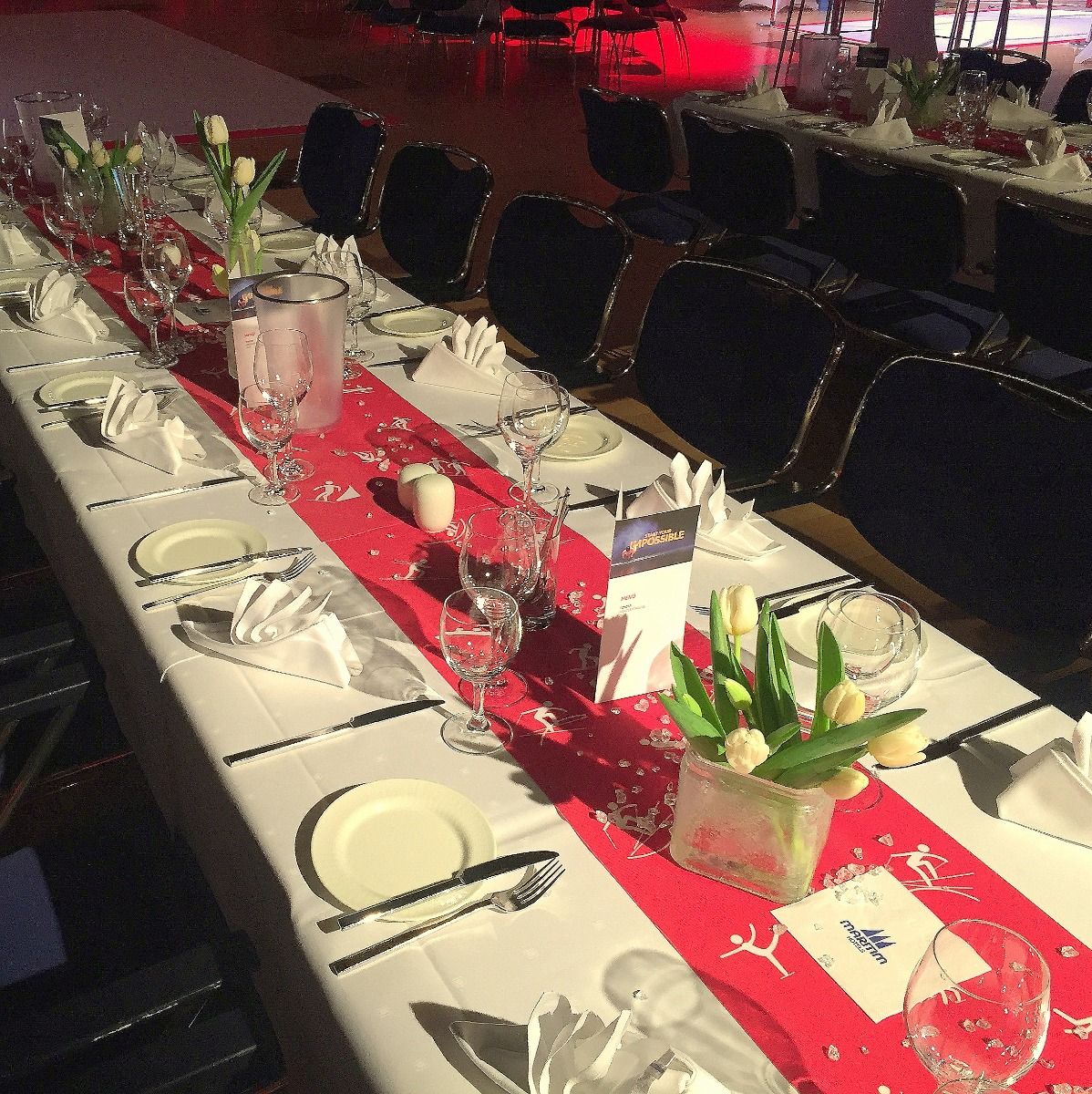 Ob Olympiaparty oder WM-VIP-Empfang - Unsere Tischrunner mit Wintersport-Icons bringen sportliche Atmosphäre. Sie passen perfekt auf Bankett- und Stehtische.