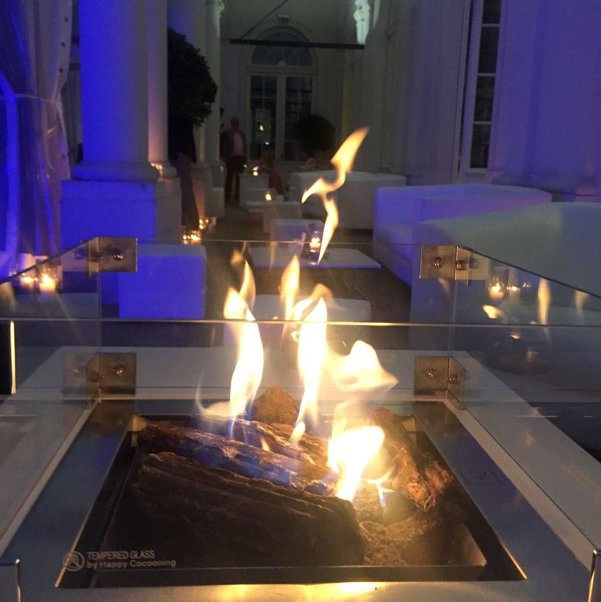 Brandneu! Das Highlight auf jeder Party: der Loungetisch mit Feuerglas - aus dem faszinierende Flammen lodern. Die Flammhöhe ist individuell regelbar.