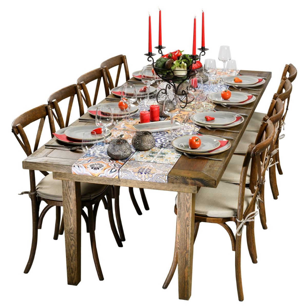 Ein Hauch von Urlaub und südländischen Flair macht sich breit. Warme Naturtöne dominieren, kombiniert mit sattem spanischem Rot. Clou: Statt Blumen bestimmt Gemüse das Centerpiece. Wunderbar für Gala, Party oder Geburtstag.