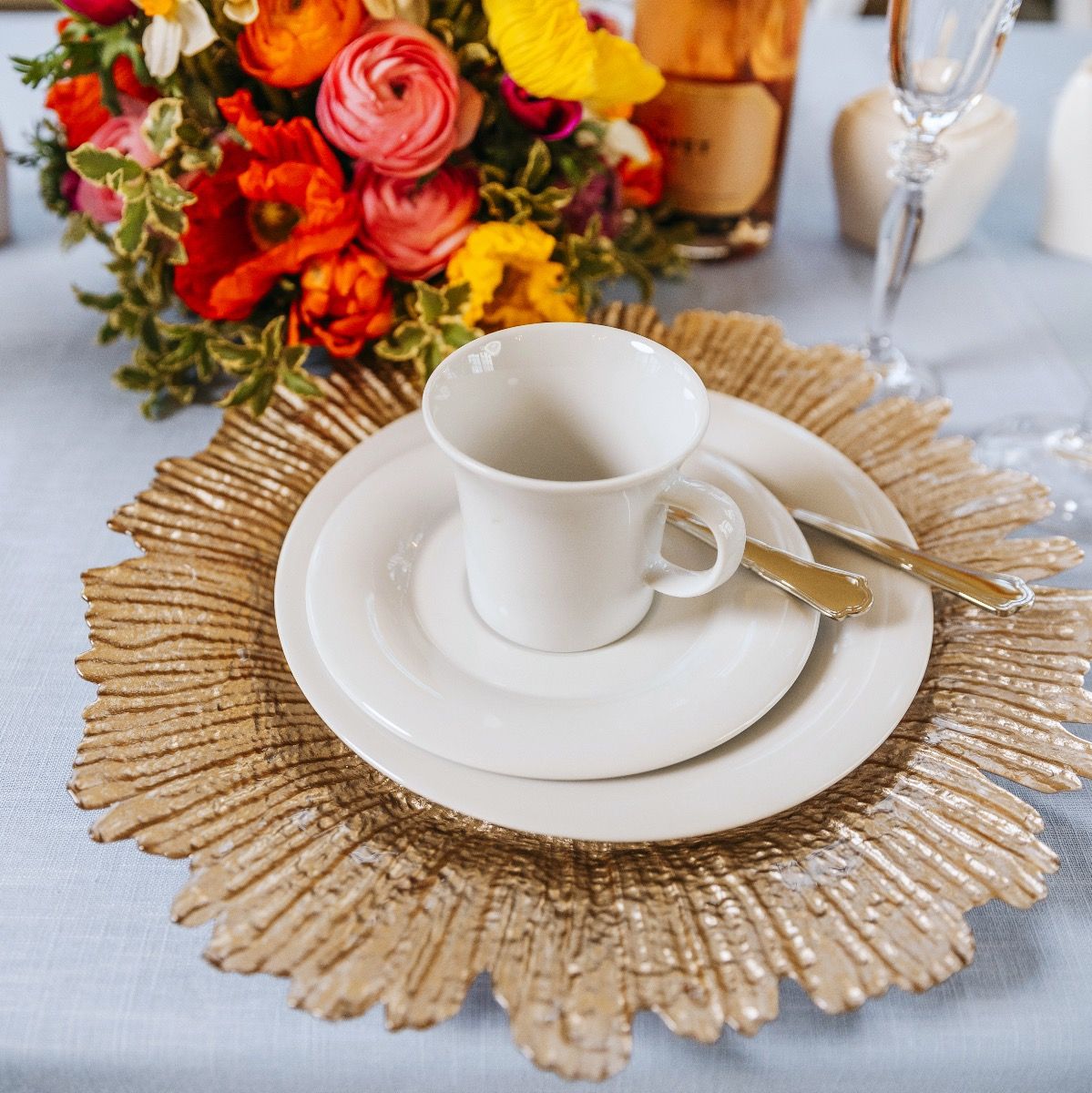 inkl. 19% MwSt., zzgl. Liefer- & Aufbaukosten - Tellerset mit Platzteller Gold, Menüteller, Suppenteller0,00 €