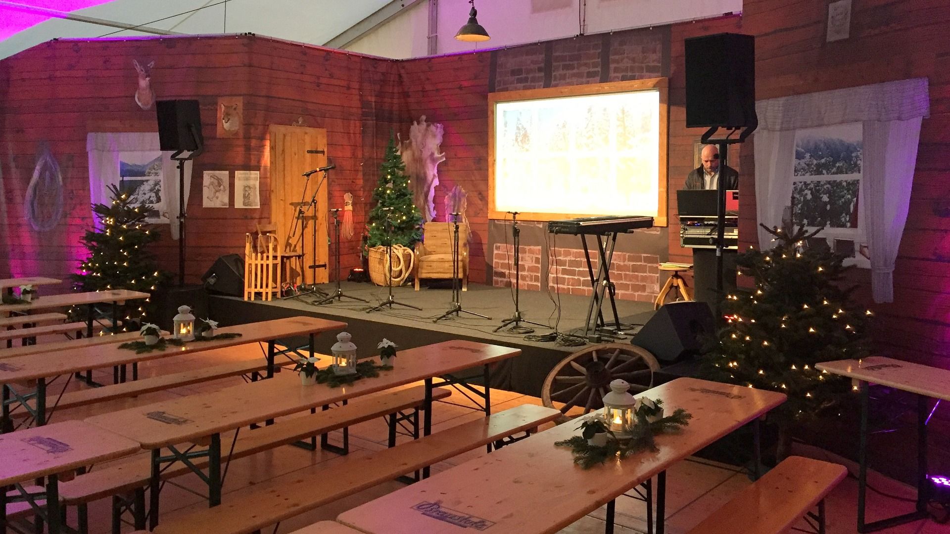 - 1x Hauptmotiv mit Fensterausschnitt für Videowand (B800 x H350 cm)