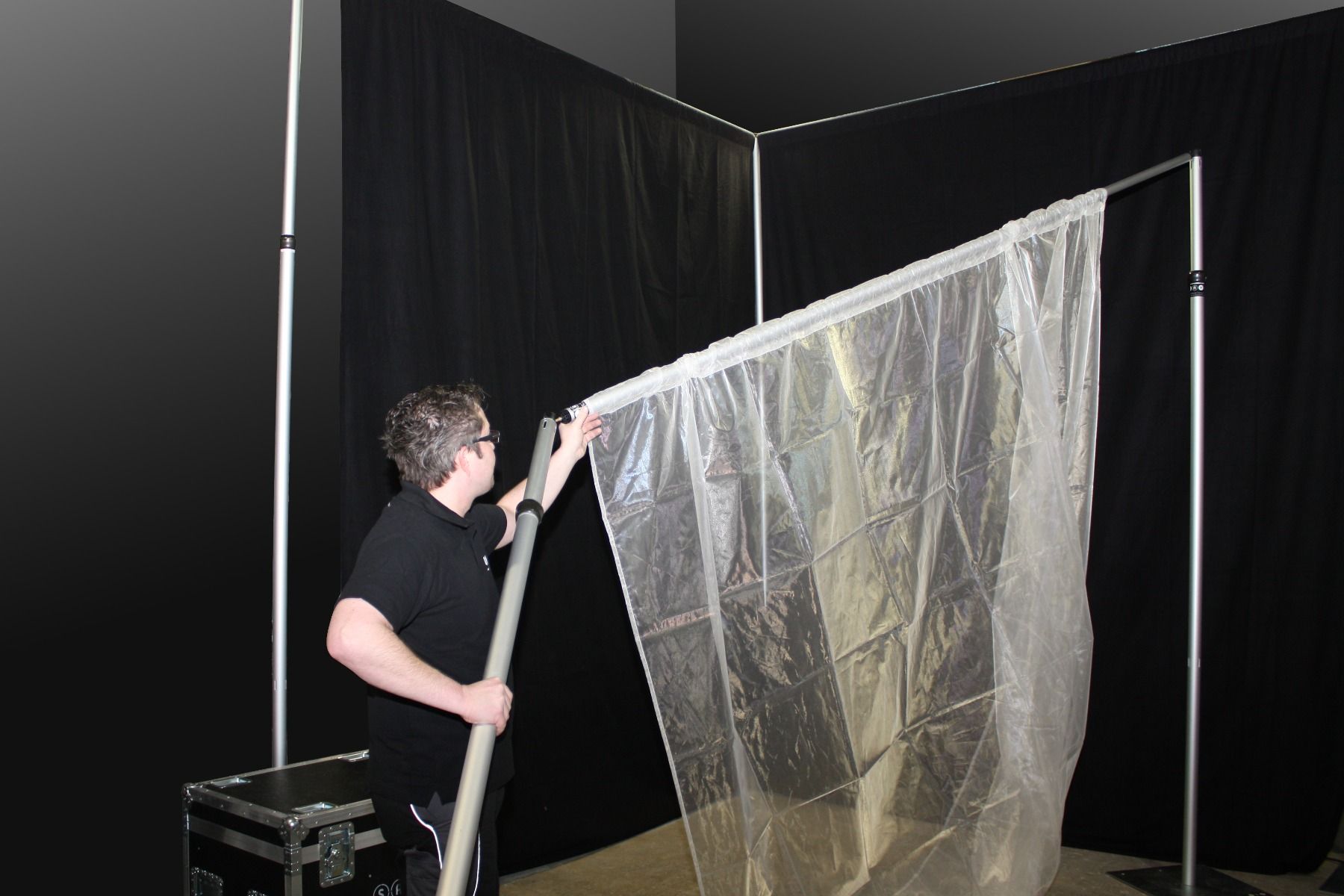 Unser Pipe&Drape Traversensystem eignet sich ideal als Raumteiler, als Verblendung oder auch zum Bau von Raum-in-Raum-Lösungen.