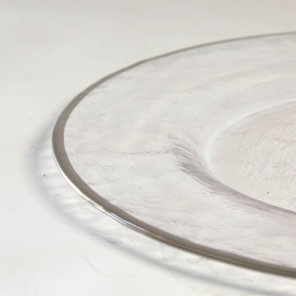 Feiner Platzteller aus Glas mit Scraggly-Effekt und 5mm Silberrand. Perfekt für Gala-Dinner oder Hochzeiten.