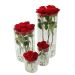 Wir haben Euch das Thema mit zwei verschiedenen Centerpieces gestaltet. Zum einen pralle Blütenpracht mit 40 Rosen und zum anderen eine 4fach-Zylinderkombination mit 22 Rosen.