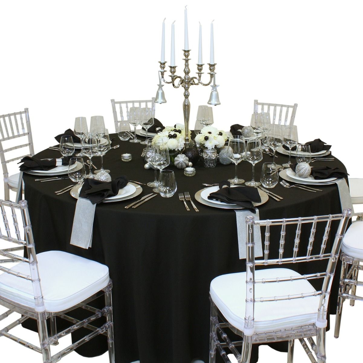Hörst Du schon die Glöckchen und die Schritte im Schnee? Weihachten naht ... Mit Silver Bells holst Du Dir ein festlich-modernes Design auf den Tisch. Schwarzes Tuch und silberne Accessoires, es funkelt und schimmert prachtvoll ohne dabei kitschig zu wirken. Wer sich traut, stellt einen schwarzen Weihnachtsbaum mit Silberschmuck danaben. Es lebe die Avantgarde! Frohes Fest und liebe Grüße an unsere Freunde in Portland, Oregon, die das Design kreiert haben.