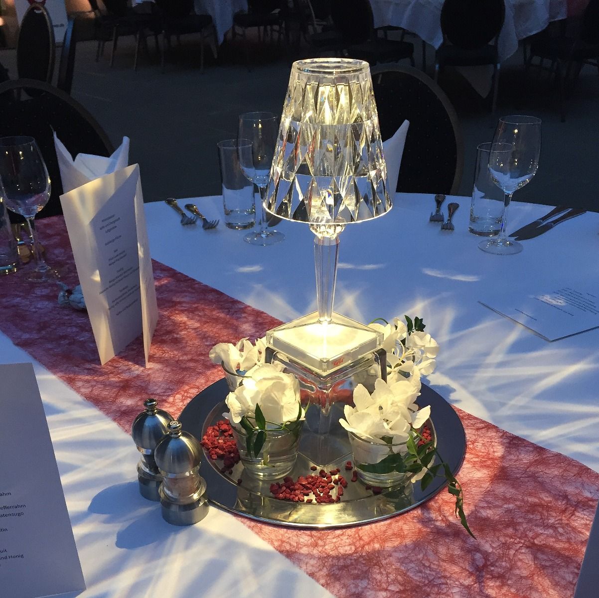 Dieser Stern wird Dich verzaubern. Die wunderschönen Prismaeffekte unserer italienischen Designerleuchte lassen die Tafel in modernem Licht erstrahlen. Perfekt für Räume, in denen Kerzen verboten sind und auch sonst wenig Licht auf die Tische kommt. Zeitlos schönes Design für Galadinner oder Party.