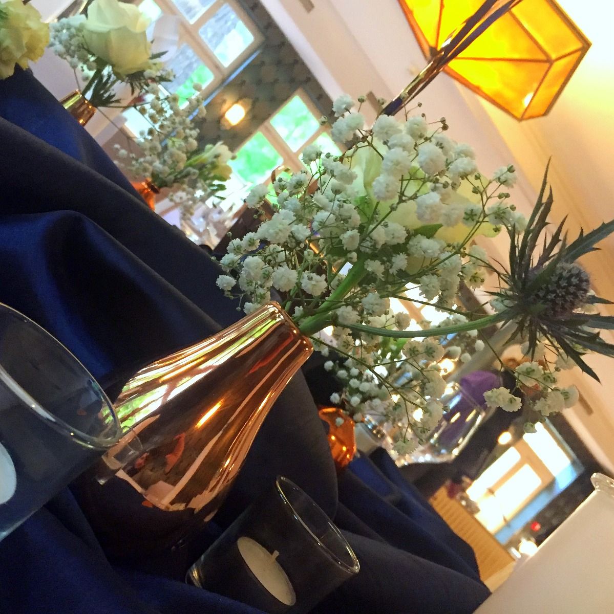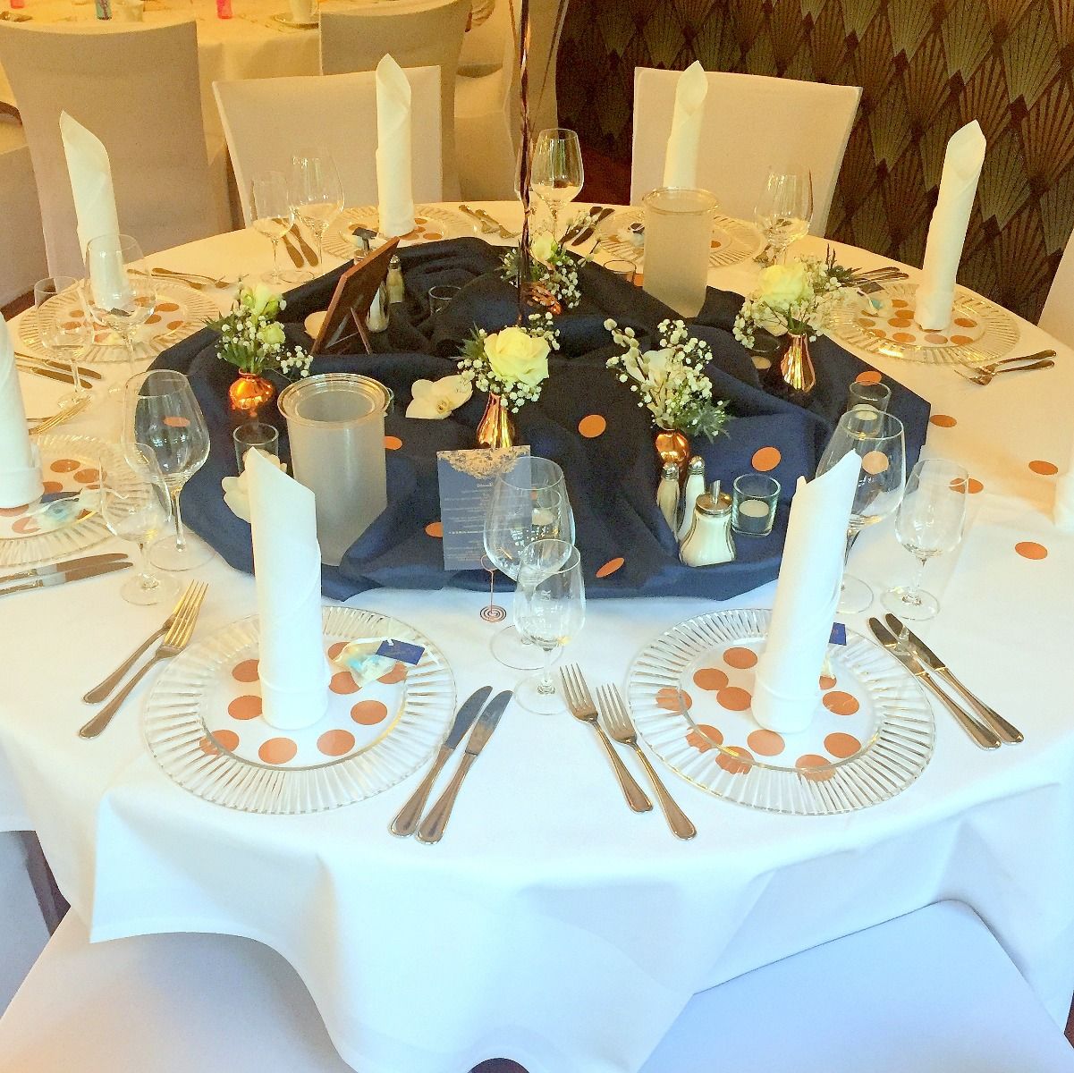Der Tischläufer passt wundervoll zu kupfernen, goldenen oder silbernen Accessoires.
