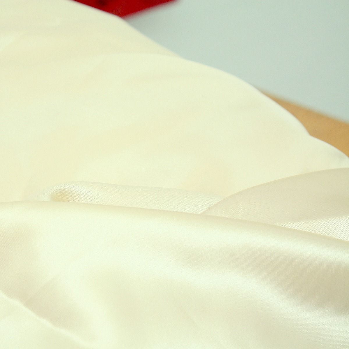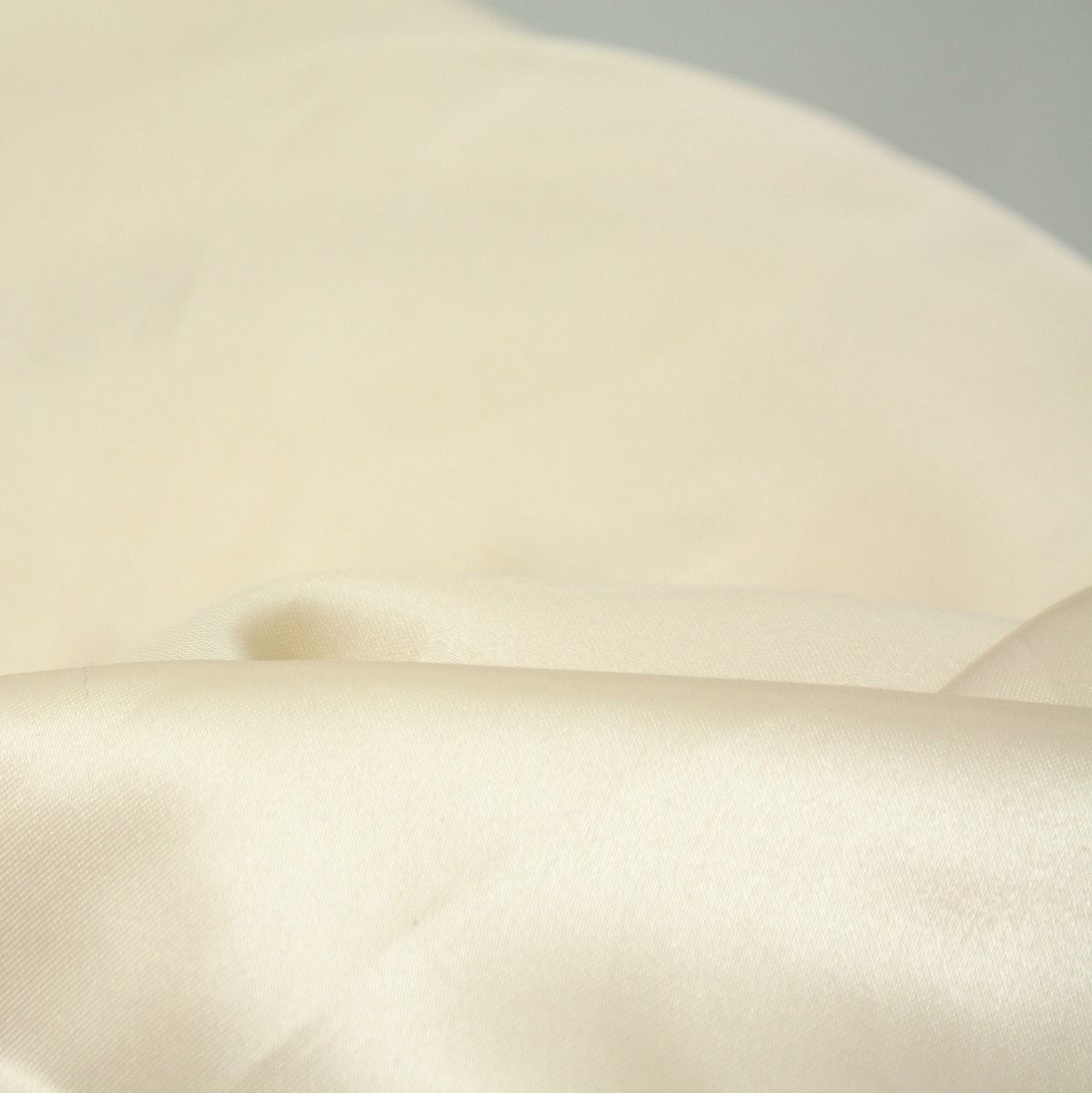 Ein elegantes, bodenlanges rundes Satin-Tischtuch im Champagne-Ton mit tollem Faltenwurf - passend für Banketttische D180 cm.