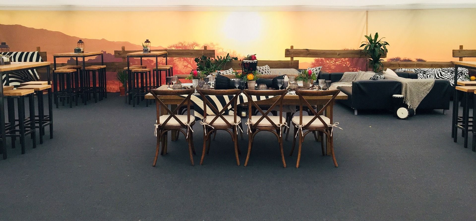 Deko-Zaun zur optischen Begrenzung von Bannern oder Aktionsflächen. Rohes Holz, dunkel gebeizt und B1 imprägniert - nur für Dekozwecke geeignet und nicht zur Sicherung von Bühnen oder Podesten. Der Zaun ist beliebig verlängerbar.